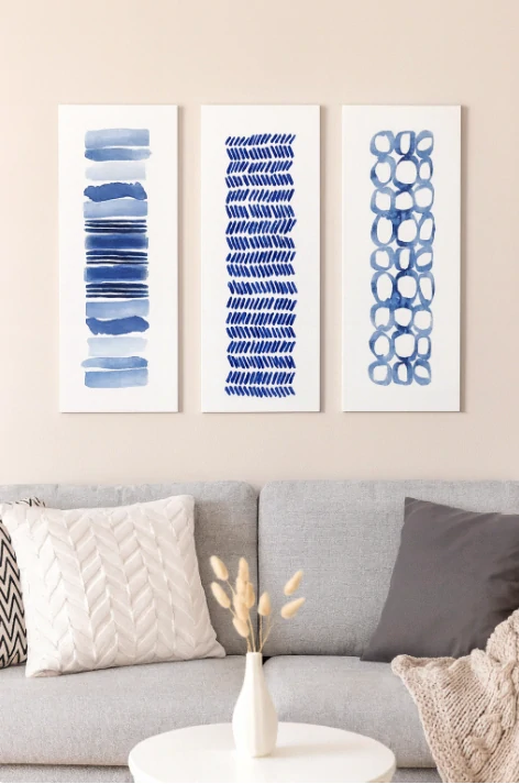 Obraz na MDF 3ks MODRÁ GRAFIKA 20 x 50 cmSkladem více než 4 ks299 Kč/ ks247 Kč bez DPH