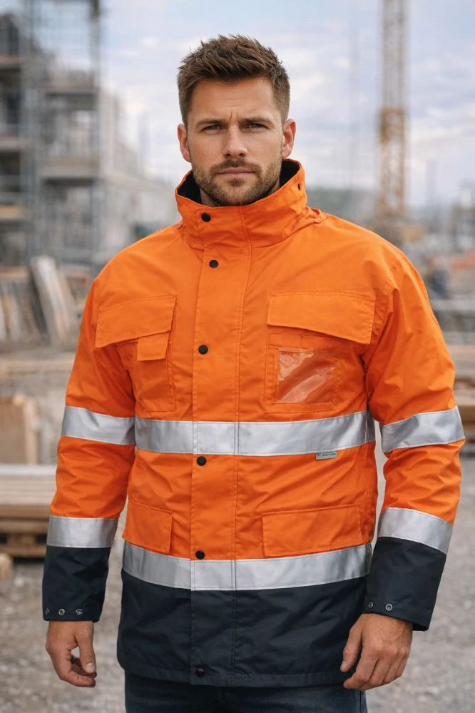 Normy: EN 471 (3:2) – výstražné oděvy, EN 343 (3:1) – ochrana proti dešti